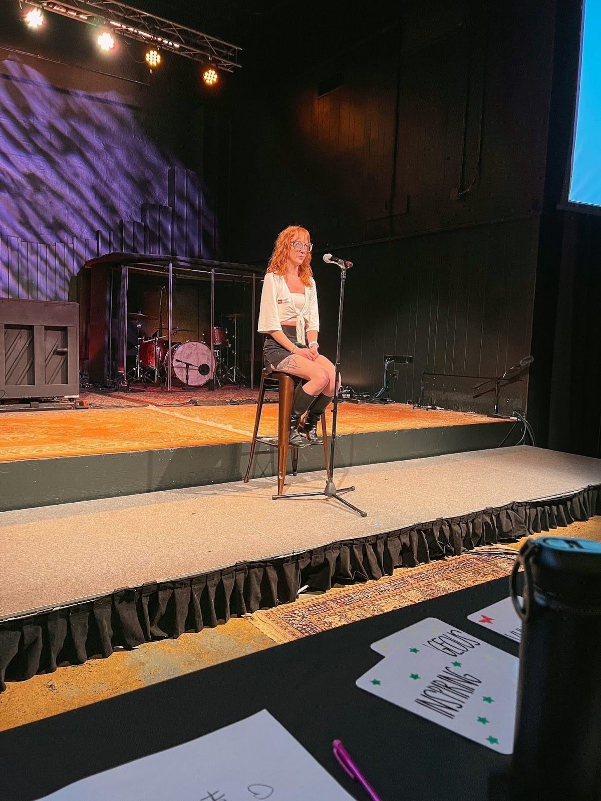 So I got on the stool. Under the lights. In front of actual humans.