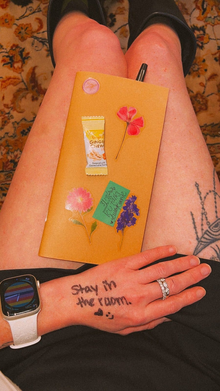 I found out when I got there. ICU Talks, moth-style, judges and score cards and a winner at the end. I had shown up with my travelers notebook with one page of very short points, a ginger chew I didn’t eat, and “stay in the room” written on my hand in black sharpie marker with a little heart underneath because I needed the reminder visible.