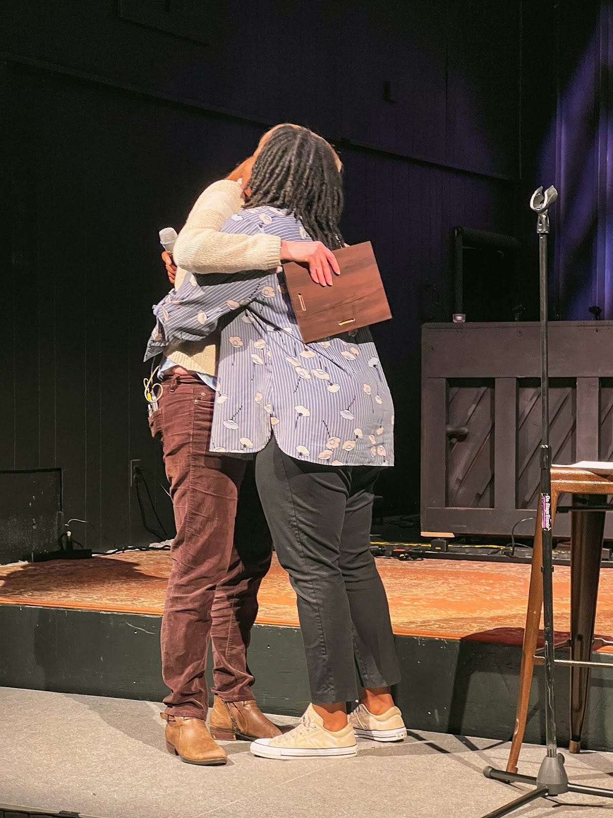 The prize was a hug. Kim announced that before anyone even spoke. We're a nonprofit, that's all we got. I laughed when she said it. Except as it turns out, being hugged over and over that night was everything.